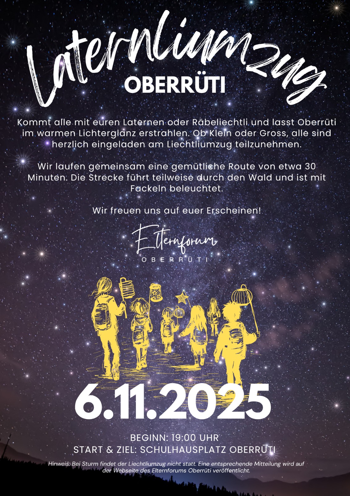 Kommt mit euren Laternen und lasst Oberrüti im Lichterglanz erstrahlen!